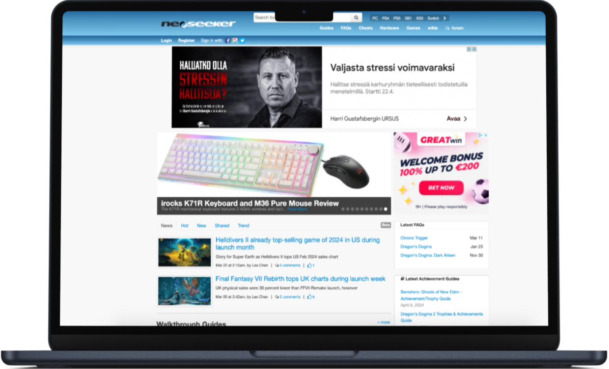 Prior to Kiosked, Neoseeker strived to unlock new revenue streams without displacing existing ad units or partners. the challenge was to find a solution that could integrate quickly and effortlessly and generate consistent results long-term.Kiosked technology detected unmonetized space on Neoseeker's site and added non-intrusive ad units that offered completely new monetization opportunities and revenue streams.